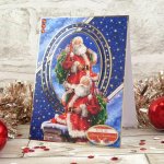 A Special Delivery is a beautiful set featuring a jolly Santa standing on a chimney ready to deliver a sack full of presents on a snowy Christmas Eve. The oval and circle toppers feature a starry and festive patterned borders and a starry border strip. Sentiments include 'Special delivery', 'Ho, Ho, Ho! Merry Christmas', and 'With love from Santa'.